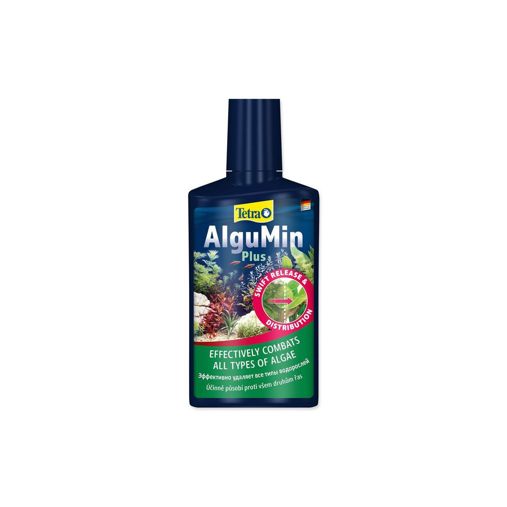 Tetra AlguMin Plus 500 ml – Šetrný tekutý přípravek proti řasám na přírodní bázi. Využívá humusové výtažky k biologickému potlačení růstu řas bez poškození ryb a rostlin. Balení vystačí na 1 000 l vody. Ideální pro bezpečné a dlouhodobé hubení řas.