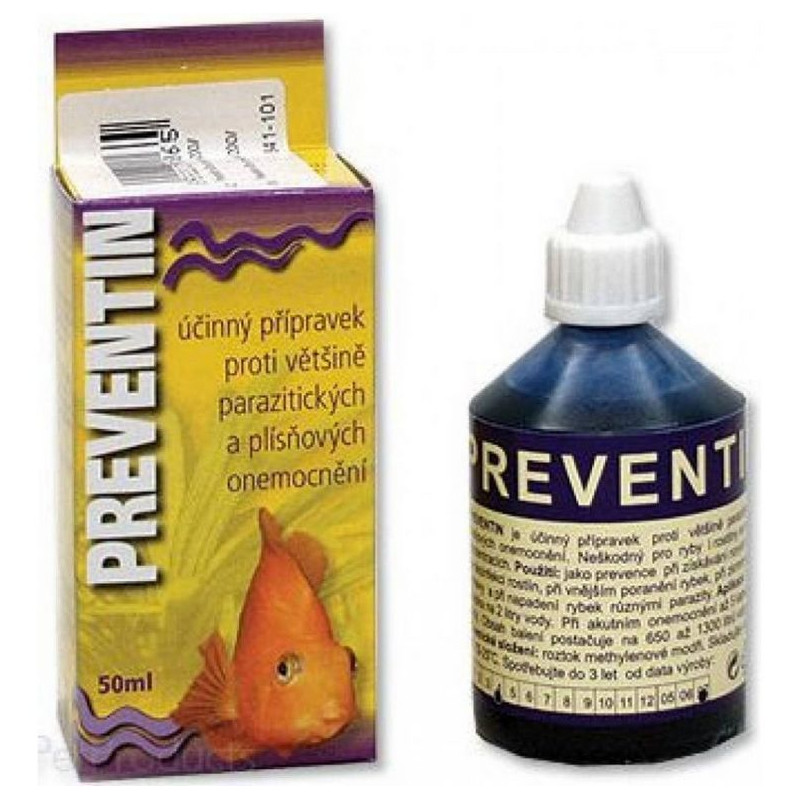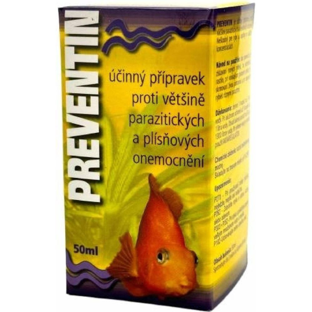 HÜ-BEN Preventin 50 ml je osvědčený akvarijní přípravek se širokým spektrem účinku proti parazitickým a plísňovým onemocněním ryb. Slouží především jako preventivní ochrana, ale lze jej použít i při prvních příznacích onemocnění nebo při zvýšeném riziku nákazy.