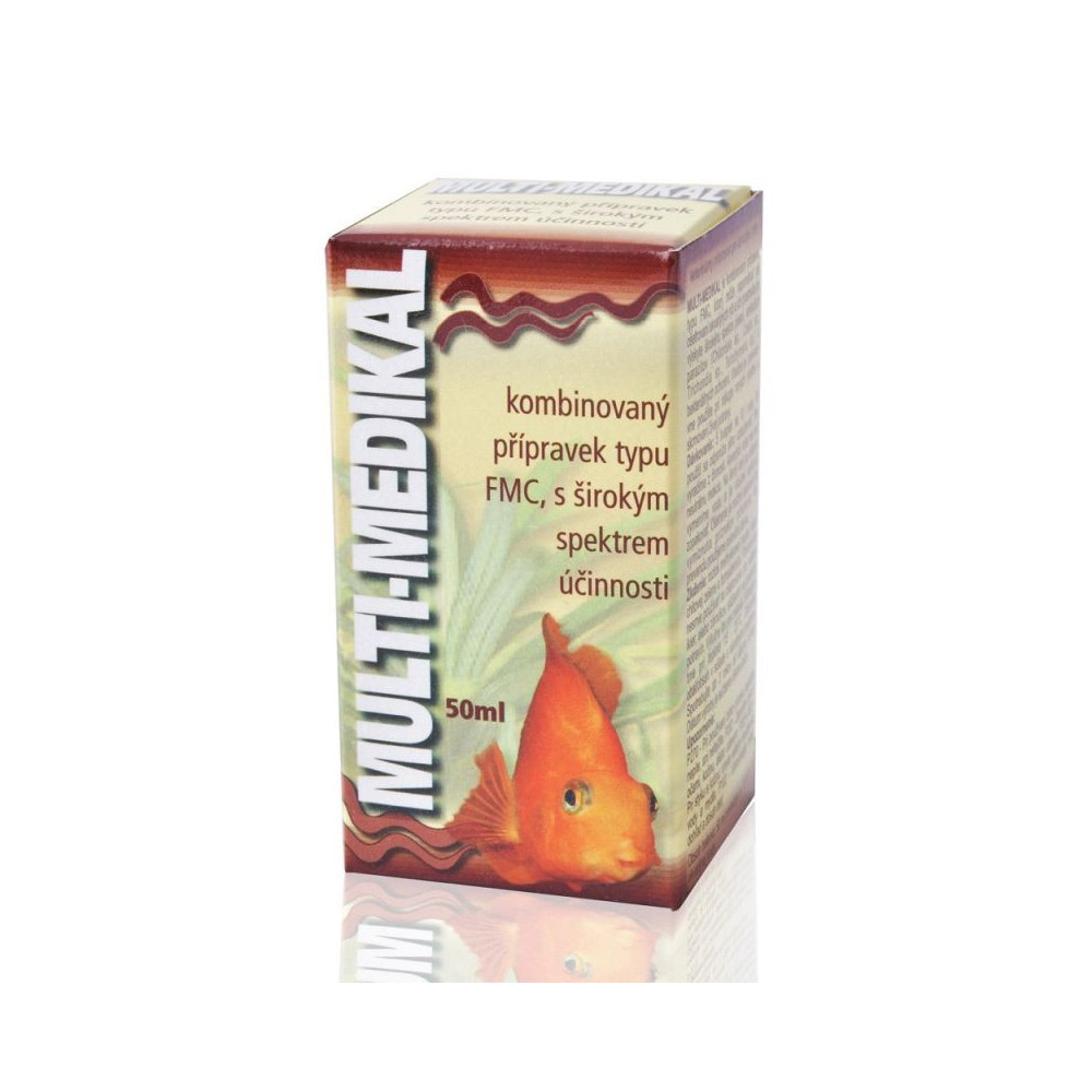 Multimedical (Multimedikal) patří mezi kombinované veterinární přípravky pro akvarijní rybičky se širokým spektrem účinnosti. Kombinovaný veterinární přípravek typu FMC pro ryby působí proti plísním, vnějším parazitům (Chilondella, Costia, Ttichondia, Tetrahymena apod) a bakteriálním onemocněním. Je vhodné pro preventivní použití při nákupu živých rybek a při zkrmování živé potravy.