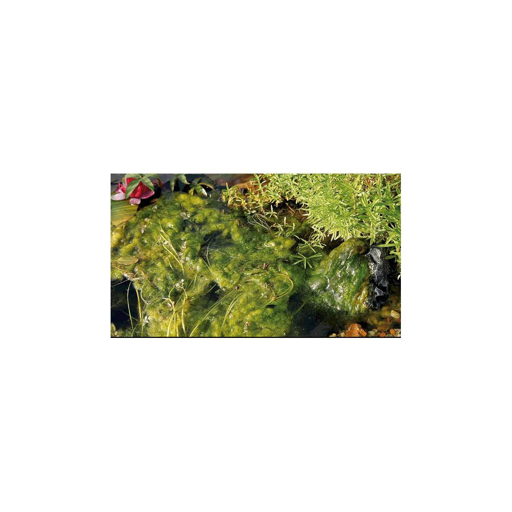 Produkt míří specificky na organismus a metabolismus řas a dochází k potlačení procesu fotosyntézy. Řasy tak postupně umírají hlady. Následný růst řas je potlačen pravidelným používáním prostředku. Pokud je řádně používán, je pro vodní rostliny, ryby a mikroorganismy neškodný. Jak bojovat proti řasám v jezírku se můžete seznámit v našich článcích jako je Vláknité řasy v jezírku - přípravky na řasy.