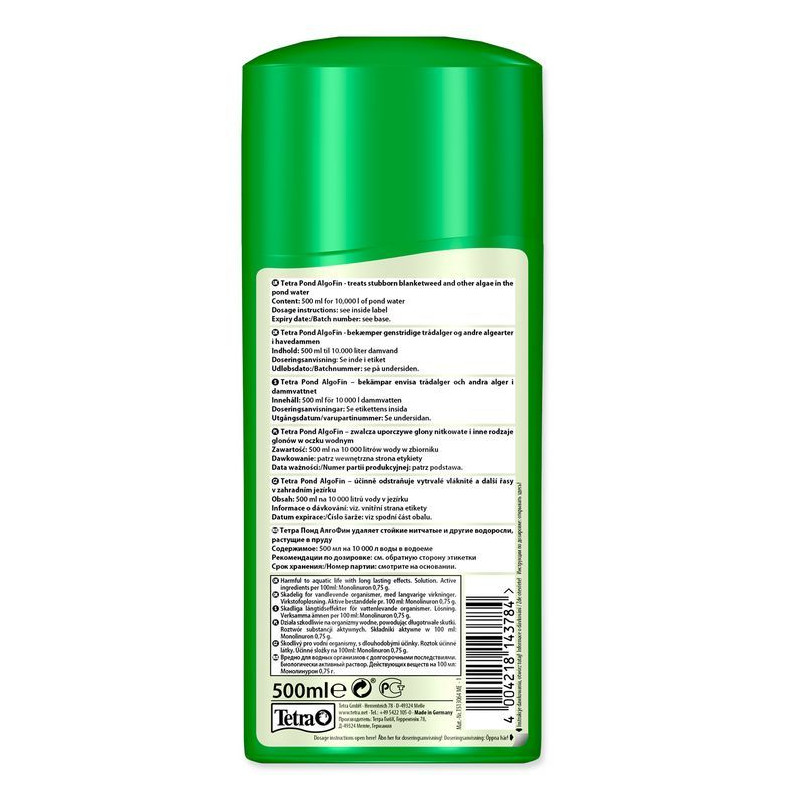 TETRA Pond Algofin 500 ml je tekutý prostředek určený k boji proti různým druhlm vlasových řas. Pčípravek ošetří až 10000 litrů vody