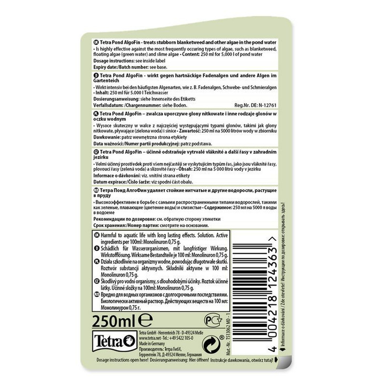 Trápí vás nevzhledné zelené provazce na stěnách jezírka nebo slizký povlak na rostlinách? Tetra Pond AlgoFin 250 ml je vysoce účinný přípravek speciálně vyvinutý pro boj s nejodolnějšími druhy řas. Působí cíleně proti vláknitým a vlasovým řasám, které narušují estetiku i biologickou stabilitu vašeho zahradního biotopu.