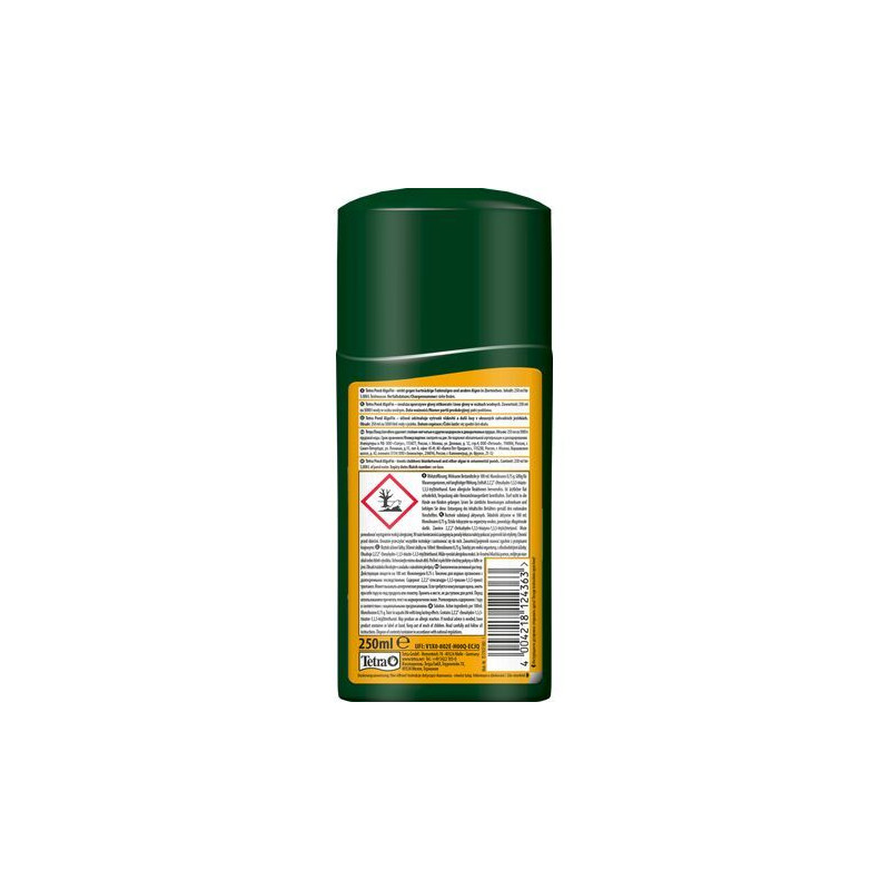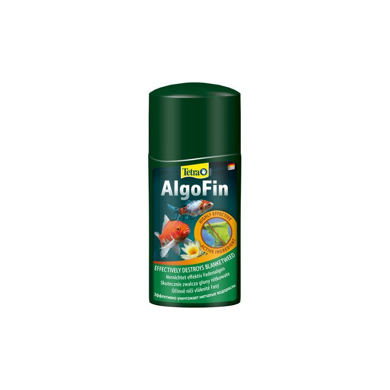 Tetra Pond Algofin 250 ml působí na vláknité a slizovité řasy. Používá se i jako prevence v zahradních rybníčcích do objemu 5000 litrů.