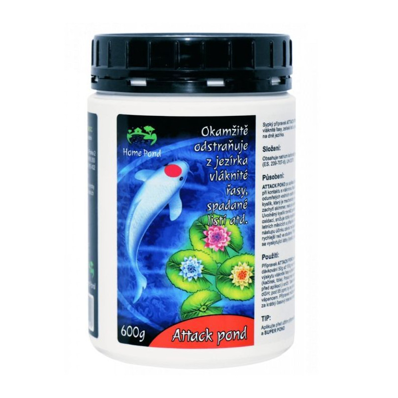 Potřebujete rychle vyčistit menší jezírko nebo zlikvidovat ložiska řas mezi kameny? Attack Pond 600 g je profesionální přípravek s okamžitým účinkem. Funguje na bázi aktivního kyslíku, který při kontaktu s nečistotami vyvolá reakci, jež vláknité řasy, tlející listí a kal mechanicky vynese na hladinu.