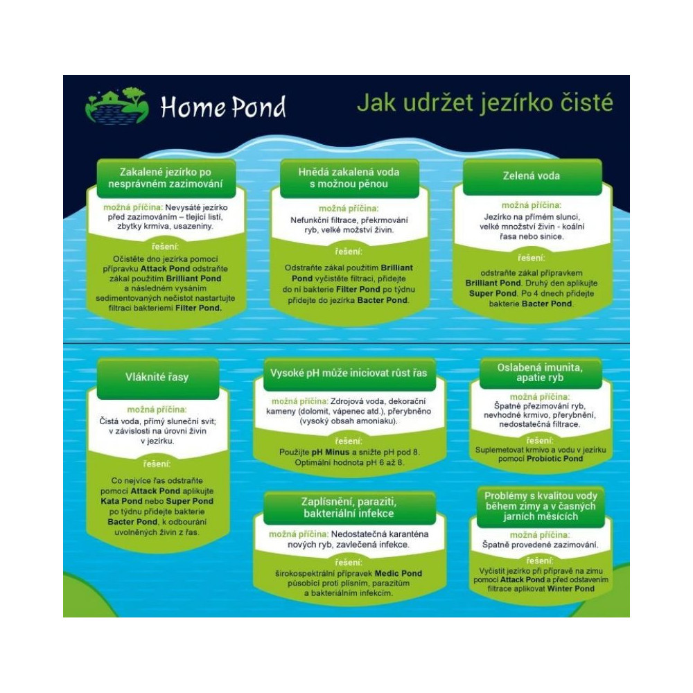 Jsme specialisté na jezírkovou chemii Home Pond. Kilogramové balení Super Pond držíme skladem pro okamžitou expedici, abyste mohli zakročit proti řasám dříve, než se nekontrolovaně rozšíří.