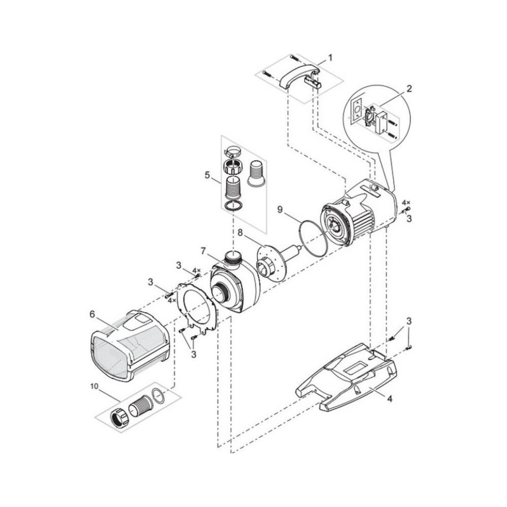 Sestavte v opačném gardu. Netahejte čerpadlo za elektrický kabel.