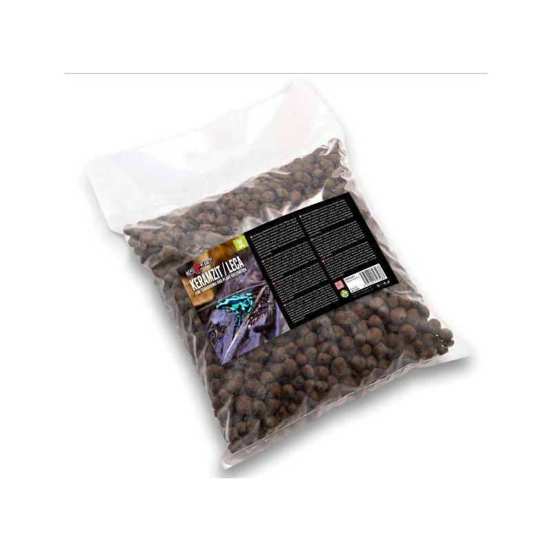 Přírodní keramzit pro tropická terária. Zajišťuje drenáž, udržuje vlhkost a podporuje růst rostlin. Vhodný pro obojživelníky, opakovaně použitelný.