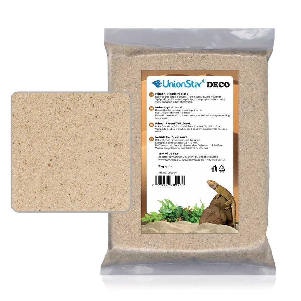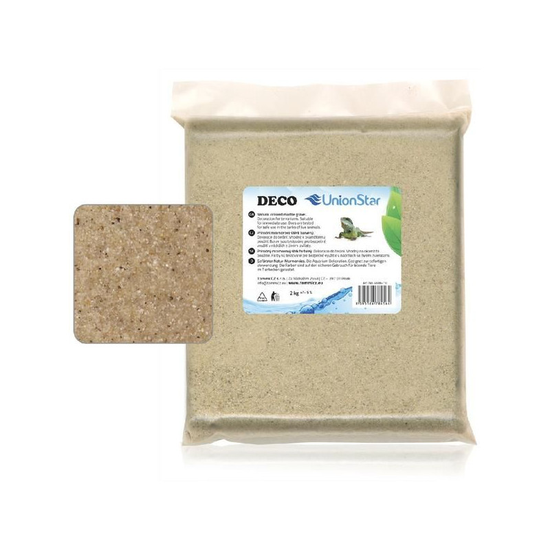 UnionStar přírodní substrát pro plazy - jemný písek DECO. Použití na dno do akvária, písek pro agamy nebo akvarijní písek, Balení 2kg.