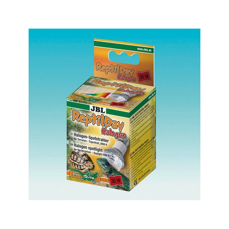 Terarijní žárovka JBL ReptilDay 35W se závitem E27. Speciální halogenová bodová žárovka do terária ReptilDay pro želvy a jiné plazy. V teráriu vytváří denní celospektrální světlo 2900 K. Podporuje růstu rostlin a vitalitu živočichů. Je vynikajícím zdrojem bodového světla a tepla. Žárovka vydává o 15 % více světla a má dvojnásobnou životnost ve srovnání s běžnými zářivkami.