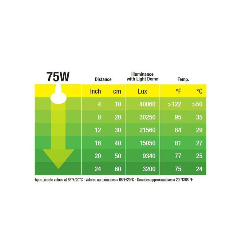 Žárovka Exo Terra Daylight Basking Spot 75W je výhřevná bodová žárovka pro pouštní a tropická terária. Žárovka Exo Terra Daylight Basking Spot 75W poskytuje široké spektrum denníhio světla pro terária, vytváří obrovský prostor pro termoregulaci, zvyšuje okolní teplotu vzduchu, stimuluje přirozené chování a režim díky UVA záření. Může být kombinována še žárovkou Night Glo a Heat Glo.