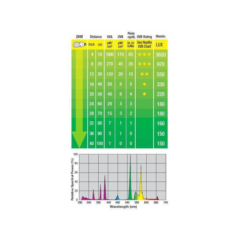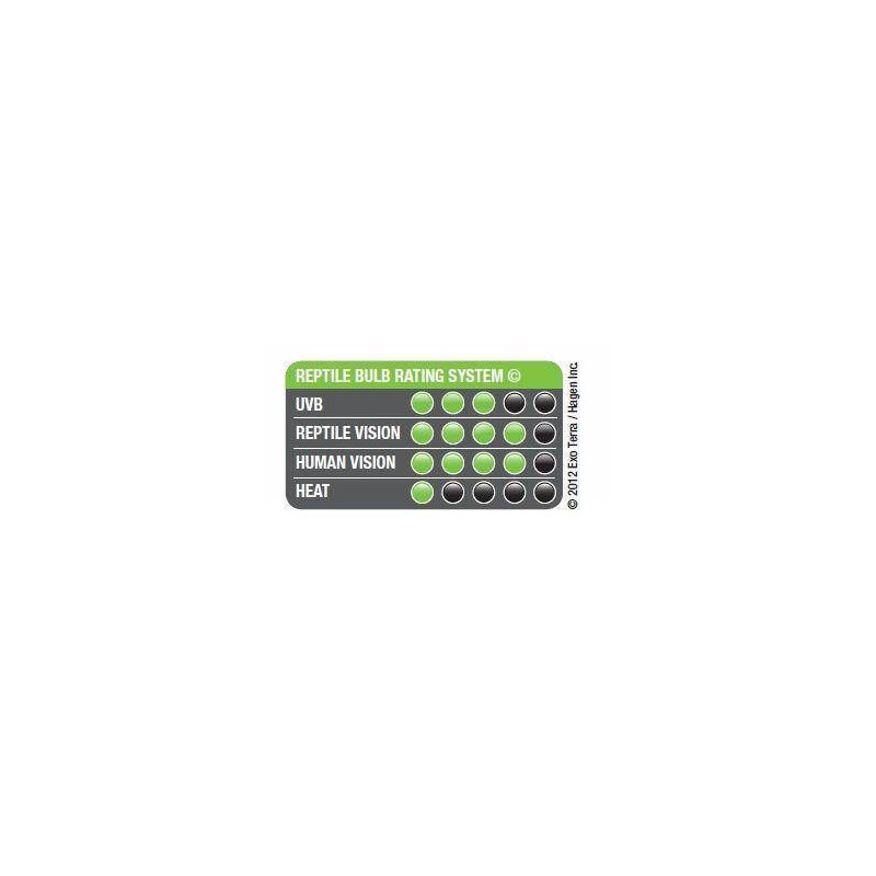 Ultrafialovým zářením UVA stimuluje chuť na krmivo pro plazy, aktivitu a reprodukční chování chovaných zvířat. UV žárovka se doporučuje v kombinaci s modelem Repti Glo 2 pro vyšší výkon v oblasti viditelného světla.