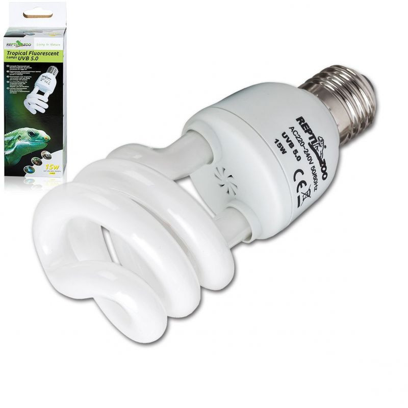Spirálová UV žárovka ReptiZOO UVB 5.0 je vhodná do terárií, která mají imitovat prostředí s vyšší propustností slunečních paprsků (5% propustnost UV záření).