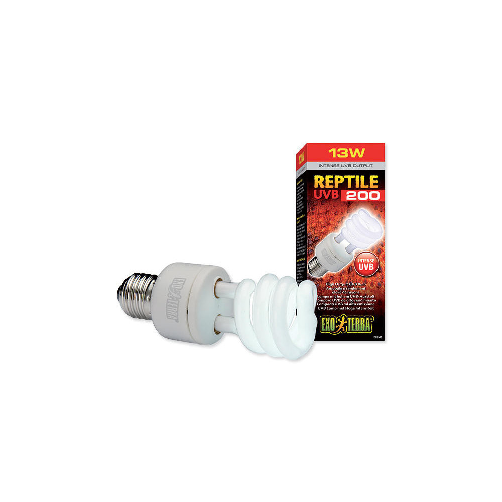 Terarijní žárovka Exo Terra REPTILE UVB 200 13W pro pouštní či vyšší terária simuluje podmínky pro plazy s velmi vysokými požadavky na UV u denních plazů z pouštních prostředí