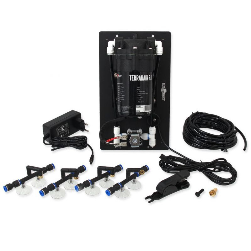 Rosící systém TerraRain je vhodný ke zvýšení vlhkosti v celém teráriu a k automatickému zavlažování rostlin v teráriu či akváriu.