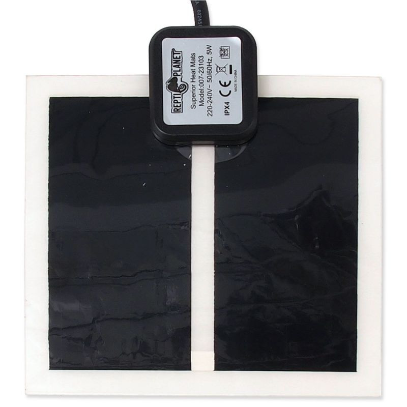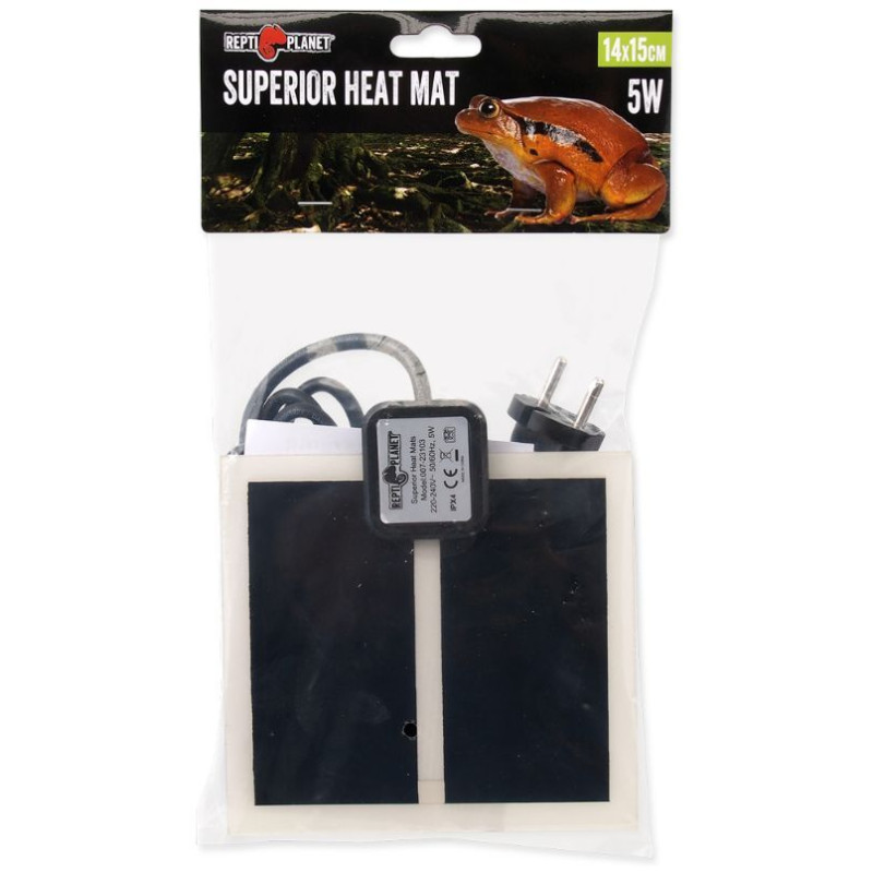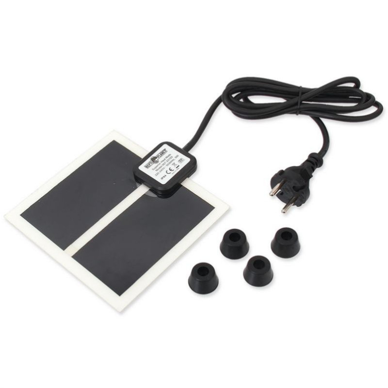 Terarijní topná deska REPTI PLANET Superior 14 cm, která se lepí na spodní stranu akvária nebo terária. Terárium se zvedne pomocí samolepících nožek, které jsou součástí balení a z vnější strany nalepíte topnou desku.