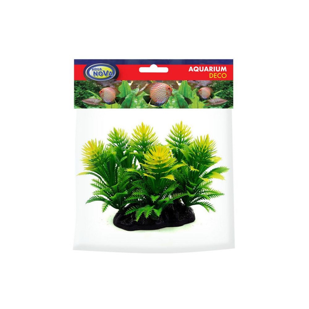 Umělá rostlina Aqua Nova NP-13 090D-R o výšce 13 cm představuje atraktivní dekoraci, která dodá akváriu přirozený a barevně výrazný vzhled. Rostlina tvoří efektní shluk jemných plastových lístků ve svěže zeleném odstínu, který směrem k vrcholům přechází do zlatavé barvy. Díky tomu působí velmi realisticky a krásně vynikne v každém akváriu. Proto patří do skupiny umělé rostliny jako živé.
