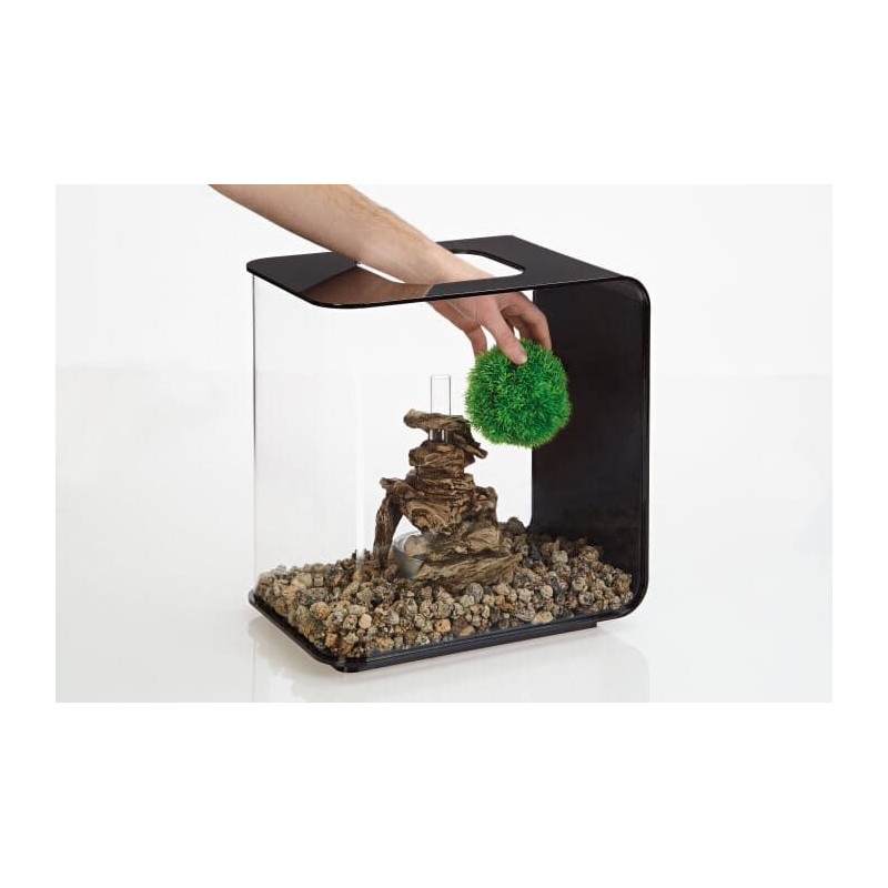 Speciální funkce pro biOrb: Velký míček lze navléknout přes vzduchovací sloupec (případně přes dekorační sloupec) jako pouzdro, čímž opticky obohatí centrální prvek nádrže.