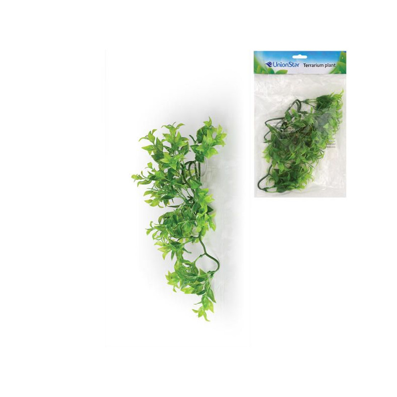 Terarijní plastová rostlina UnionStar UH L o velikosti 40 cm pro dekoraci terária. Příjemně zelená barva 🌿přidá interiéru terária na atraktivitě.