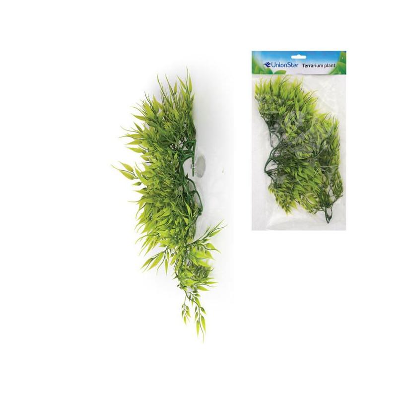 Terarijní plastová rostlina UnionStar 40 cm je je umělá rostlina slouží pro dekoraci terárií a zároveň jako úkryt pro terarijní zvířata.