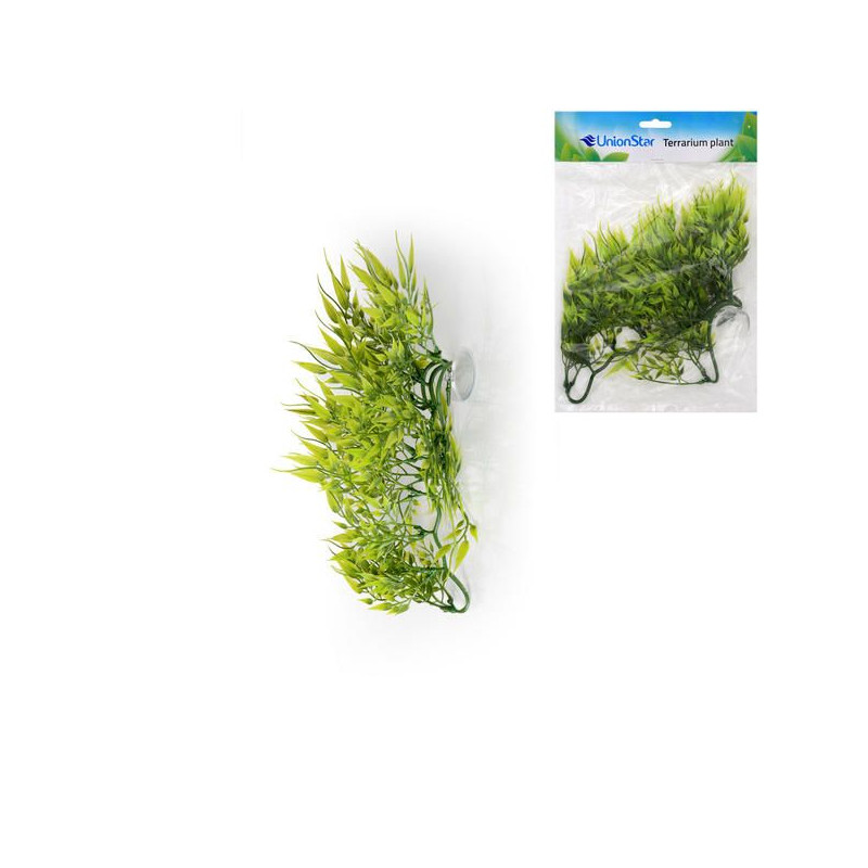 Terarijní plastová rostlina UnionStar UH L o velikosti 40 cm pro dekoraci terária. Příjemně zelená barva 🌿přidá interiéru terária na atraktivitě.