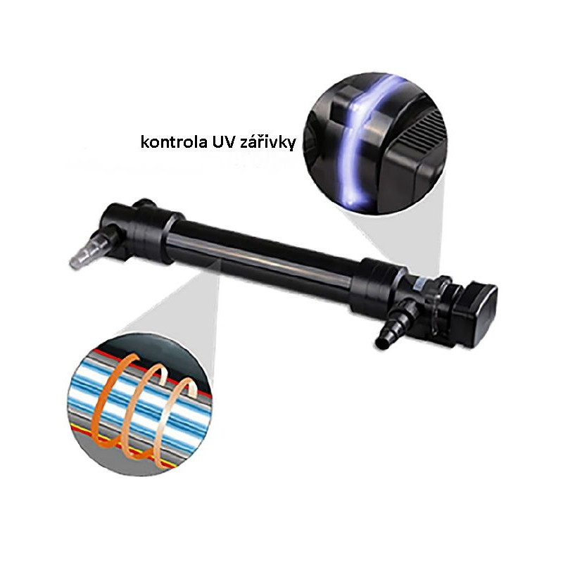 - Vizuální kontrola: Díky průhledné části krytu můžete kdykoliv snadno ověřit, zda je UV zářivka v provozu, aniž byste lampu museli rozebírat.