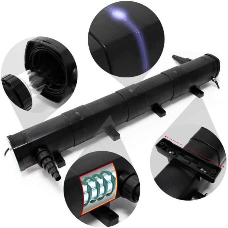 Spojením UV lampy, filtračního čerpadla a jezírkového filtru Omega sestavíte filtrační set, který zajistí průzračně čistou vodu ve Vašem jezírku. UV lampa má zabudované spirálové vedení průtoku vody, které funguje jako čištění křemíkové trubice a současně zvyšuje účinnost UV lampy. UVC světlo seskupuje plovoucí zelené řasy, které tak mohou být lépe odfiltrovány, a usmrcuje choroboplodné bakterie.