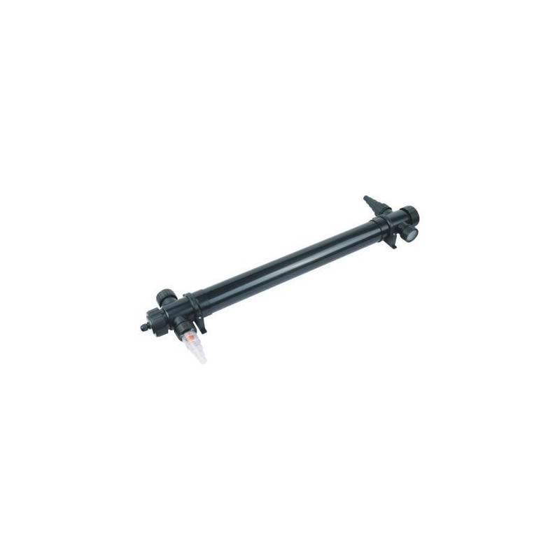 UVC sterilizátor UV-172 čistí vodu v zahradním jezírku nebo vodní nádrži pomocí UV záření. UV záření shlukuje řasy do větších celků, aby je dokázal zachytit filr. Současně vodu zbavuje patogenních bakterií. Na čistící bakterie v jezírku nemá žádný vliv, neboť ty žijí na kamenech, bocích nádrže a rostlinách. Rybniční UV lampa UV-172 je osazena dvěmi čtyřpinovými zářivkami 36W.