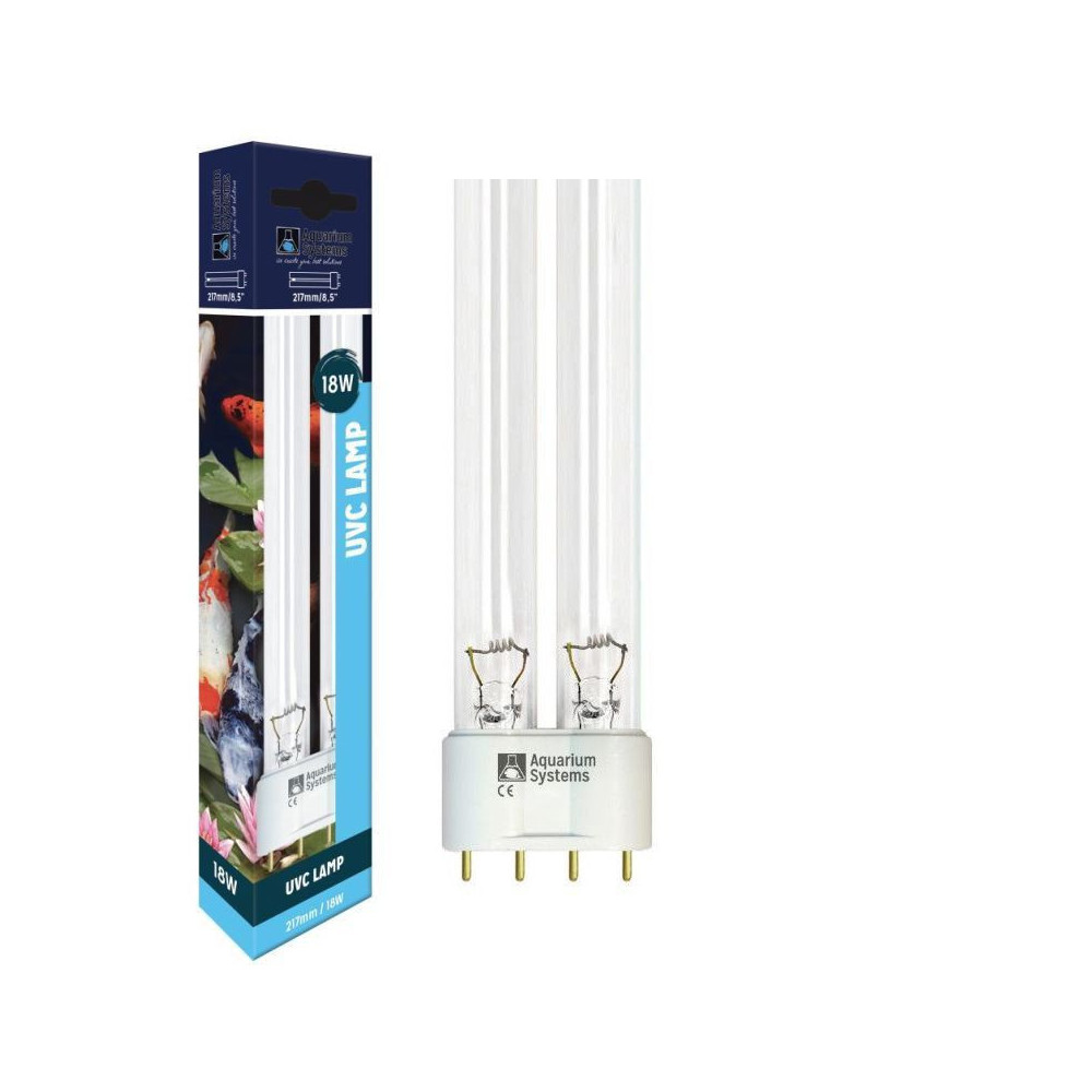 Germicidní UV zářivka 18W AQ Systems renomované značky jako s Arcadia UltraClear UVC 18W či Osram HSN L 18 W. Použití pro docílení čisté vody v akváriích a rybníčcích. UV-C zářivka 18W pasuje do většiny UV lamp, např. pro UV lampy OASE, Pontec, Heissner, Aqua Nova, Resun a další. Plovoucí řasy a choroboplodné zárodky nemají šanci.