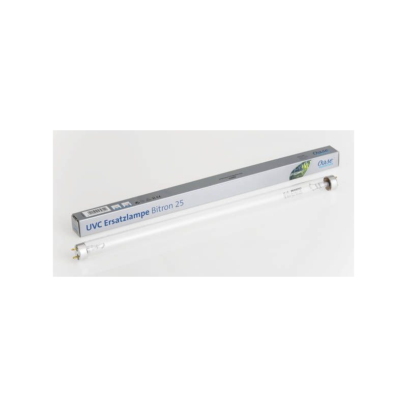 Kvalitní náhradní UVzářivka 25W pro UVC lampu OASE Bitron. UV zářivka 25W T8 je vybavena dvěmi paticemi podobná vzhledem jako klasická trubice do stropních svítidel. Dvoupaticová UVC dezinfekční zářivka s průměrem 26 mm. Bezpečnost účinné sterilizace po celou dobu životnosti zářivky.