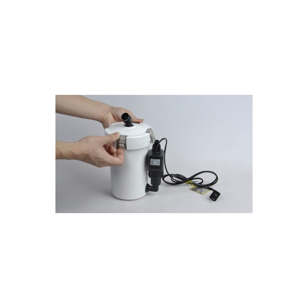 Akvarijní kanystrový filtr SUNSUN HW-602B pro nádrže 20 - 80 litrů. Externí filtrace HW-602 B je vynikající pro filtrování vody v malých akvárií. Filtr je vybaven účinným bio čištěním vody. {sunsun_bhw} Díky stavebnicové struktuře umožňuje snadnou instalaci a čištění. {jp-450g} Filtrace SUNSUN využívá sedimentace vody, mechanické filtrace a bakterií v bio-materiálech, které mohou oddělit a rozložit škodlivé látky. Výhodou, která zaručuje dlouhou životnost filtru je keramická osička čerpadla. Čištění čerpadla filtru je jednoduché. Uzavřete ventil vody. Odmontujete čerpadlo od filtru, vyjmete rotor a obě části vyčistíte. Nemusíte odpojovat žádné hadice.