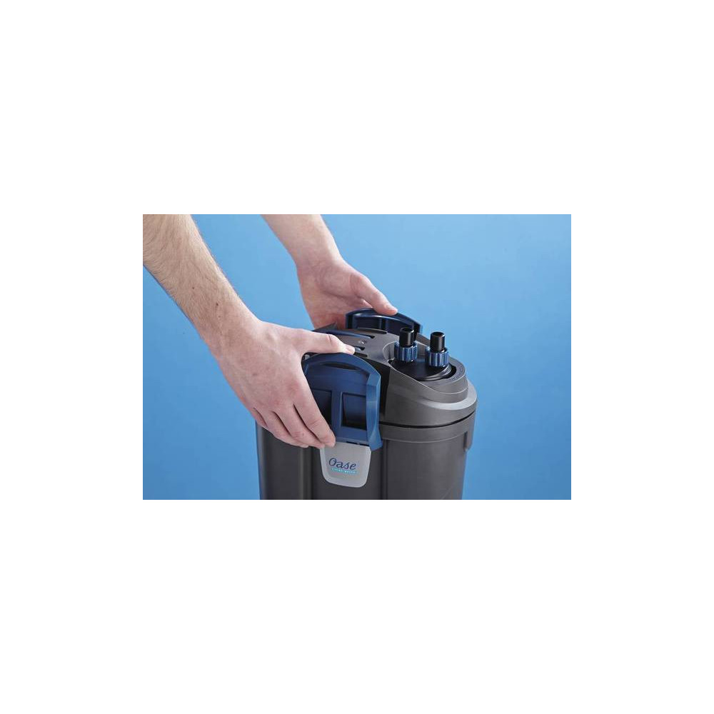 Moderní vnější filtr do akvária FiltoSmart OASE, 1000 l/h, 23W, včetně filtračních náplní, pro akvárium do 300 litrů na sladkou i slanou vodu. Německá akvarijní filtrace, která může směle nahradit vnější filtr Fluval nebo Tetra Tec EX, pracuje mechanicky a biologicky. Jako fitrační média byla použita filtrační pěna, keramické kroužky a aktivní uhlí. Akvarijní vnější filtry FiltoSmart OASE vyrábí osvědčená německá značka OASE. Moderní kompletní sestava pro rychlé spuštění včetně filtračních hmot , hadic, adaptéru, přívodu regulace průtoku a trubky odtoku stejně jako vodního difuzéru pro okysličování vody. Více pohodlí při manipulaci s filtrem díky držadlu pro přenášení. Automatické uzavření zabrání nežádoucímu úniku vody při čištění filtru. Vedle oblíbených kanystrových filtrů nabízí OASE také vnitřní filtrace jako jsou rohové filtry Biooplus bez topítka nebo s akvarijním topítkem .