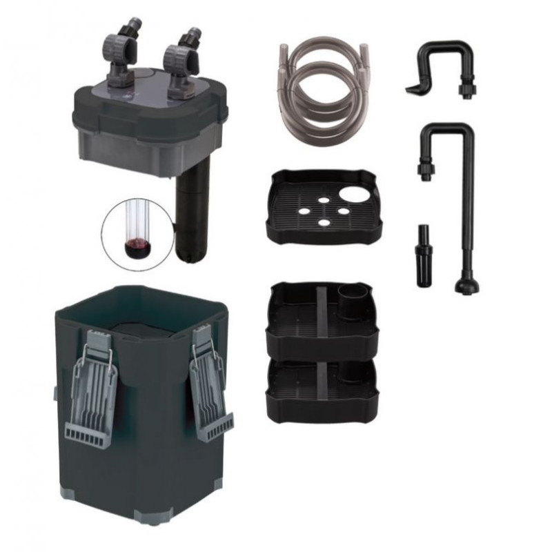 Akvarijní vnější filtr s UV lampou NOVA XCF-1000 pro akvária do 200L s tichým a účinným provozem, přičemž obsahuje vestavěnou UV lampu se třemi režimy provozu, které zajistí křišťálově čistou vodu ve vašem akváriu. Filtr zajišťuje mechanickou i biologickou filtraci a vytváří tak ideální prostředí pro vaše vodní živočichy.