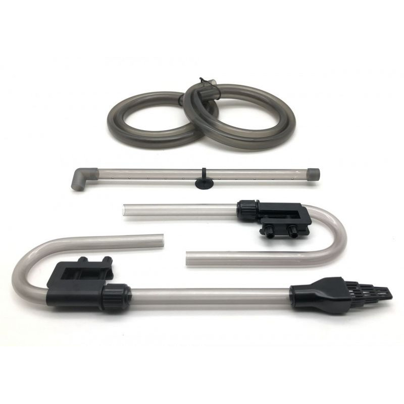 1x 1,2m hadice 16/22 mm, nasávací kit včetně úchytů a ochrany před nasátím, výtokový kit včetně úchytů a rozstřikovací rampy, 1x biomotianová vložka, 500g keramických kroužků, 500g aktivního uhlí