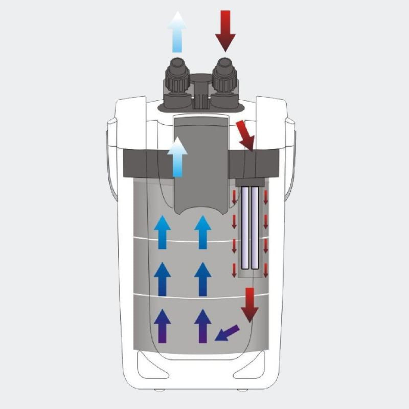 SUNSUN HW-702B vnější filtr s UV lampou 9W je oblíbený model externí filtrace s UV sterilizérem s extrémně prostorným a spolehlivým designem. Promyšlená konstrukce umožňuje provozovat akvária do 200-300 litrů a zajišťuje neuvěřitelnou jednoduchost použití.