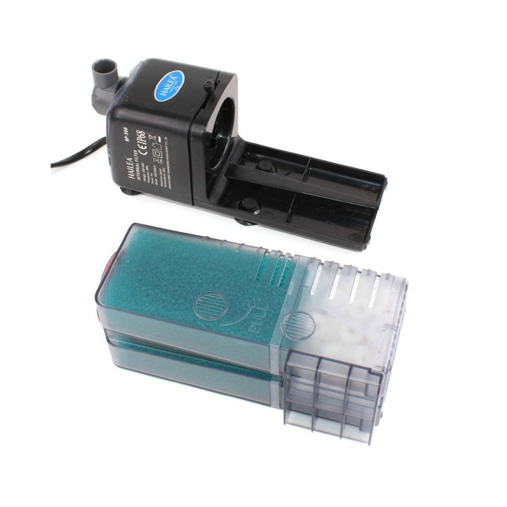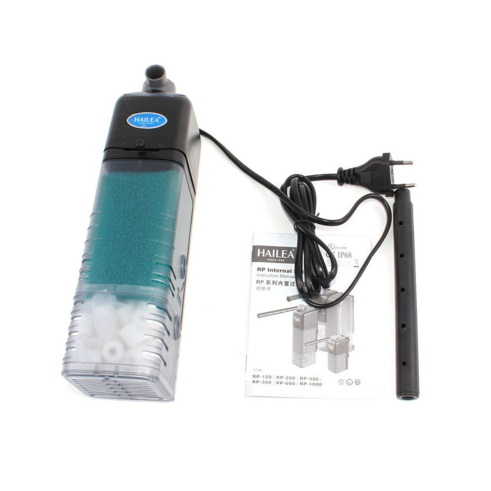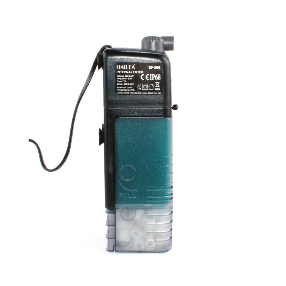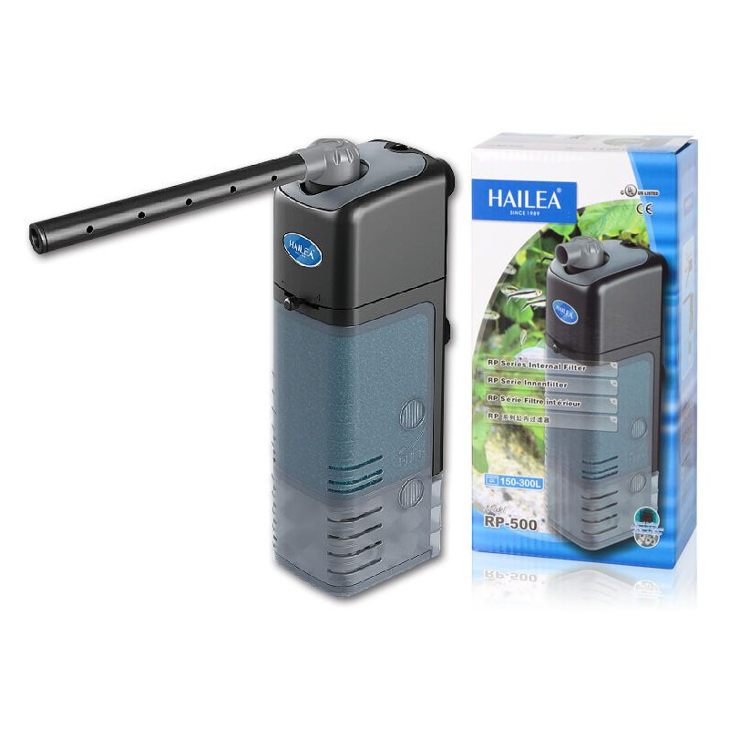 Vnitřní akvarijní filtr Hailea RP-500 s velkým objemem filtrační hmoty, regulací průtoku a rozstřikovací trubicí na výstupu.