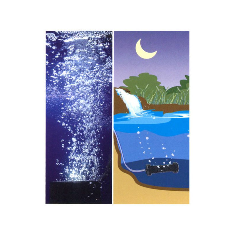 Samozátěžový a samonosný (sám klesá na dno,nepotřebuje žádné dodatečné uchycení, plastové konce fungují jako podpěra, aby válec vzduchoval po celém povrchu) (jako vzduchovací kompresor lze použít např LP-20 nebo ACO 208