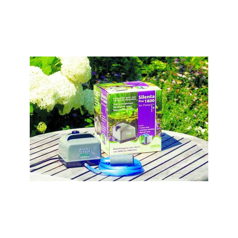 Profesionální vzduchovací sada Velda SILENTA 1800 pro vaše jezírko a akvárium pro celoroční provoz. Velda SILENTA Pro 1800 l/h pro jezírka o velikosti cca 10-15 m3. Výkon 30 litrů/minutu je dostatečný pro malá jezírka. Dodáváno včetně extra silné vzduchovací hadičky a bytelného vzduchovacího kamene GIANT.