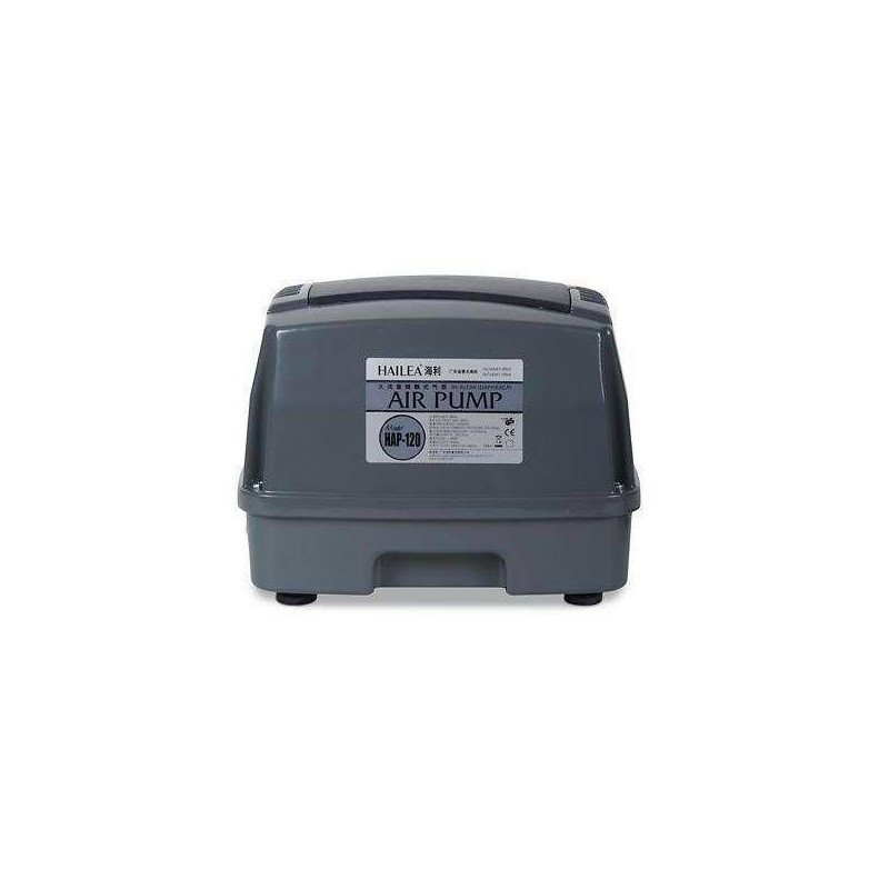 Vzduchovací kompresor Hailea HAP-120, 120 l/min., 90W, pro venkovní i vnitřní použití. Výkonná membránová vzduchovací pumpa s mohutným hliníkovým tělem pro nepřetržitý chod 24 hodin denně. Univerzální kompresor pro zahradní jezírka, biologické čističky, chovné stanice a odchovny ryb. Vzduchovacího kámen (není součástí) lze potopit max. 2 m.