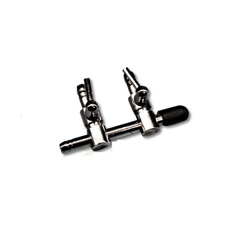 Ocelová vzduchová rozvodka s dvěmi kohouty s nerezovou povrchovou úpravou ED-02 se používá jako rozbočovač (rozvaděč) na provzdušňování nádrže.