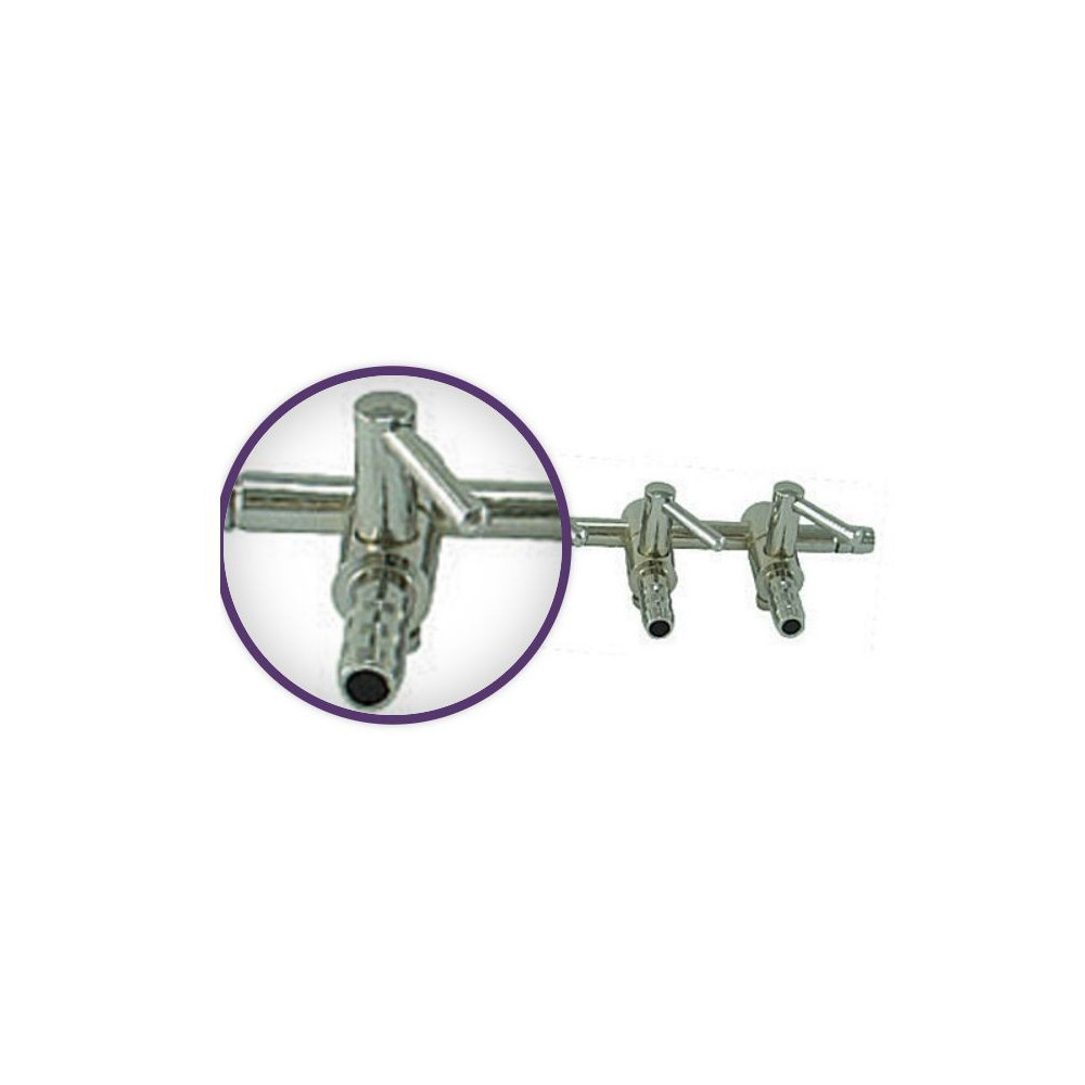 Nerezová rozvodka pro větvení rozvodů vzduchu v provedení s neobyčejně jemnou regulací množství procházejícího vzduchu prostřednictvím vestavěných kohoutů. Vhodný pro slabší kompresory.