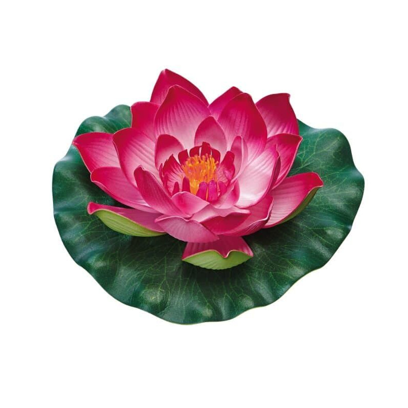 Plovoucí leknín je vyroben z plastu odolného proti povětrnostním vlivům a má na spodní straně upevňovací očko.