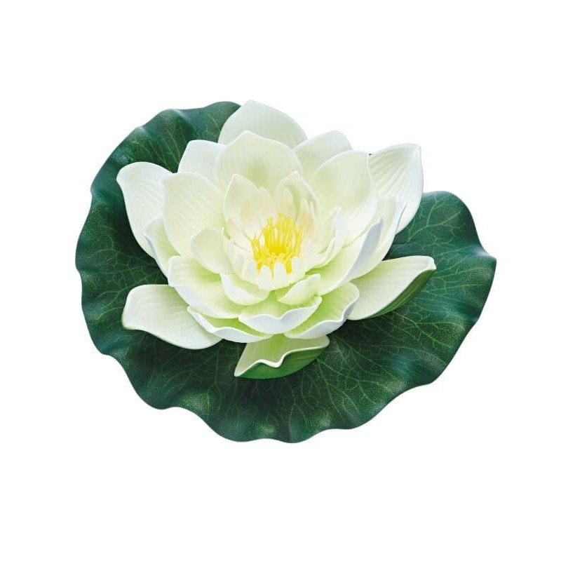 Plovoucí leknín je vyroben z plastu odolného proti povětrnostním vlivům a má na spodní straně upevňovací očko.