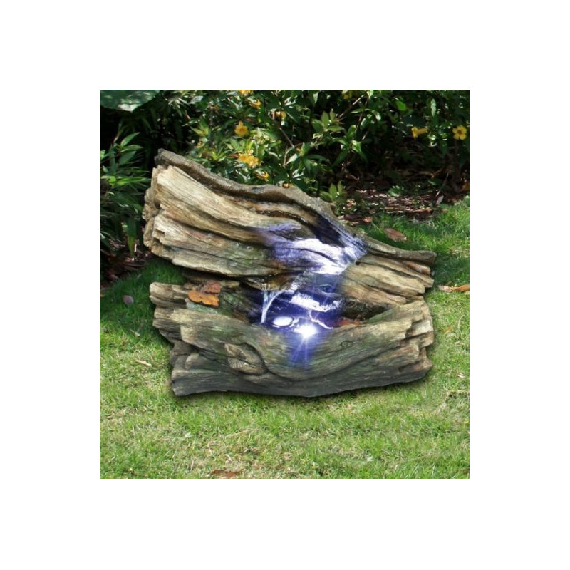 Tato fontána je vyrobena z kvalitní polyesterové pryskyřice, což zajišťuje její odolnost vůči UV záření a mrazu. Díky tomu je vhodná pro vnitřní i venkovní použití. Design fontány imituje ztrouchnivělé kmeny stromů porostlé choroši, čímž vytváří autentický dojem lesní studánky. Integrované LED osvětlení zvýrazňuje proudící vodu, což přispívá k relaxační atmosféře, zejména ve večerních hodinách.
