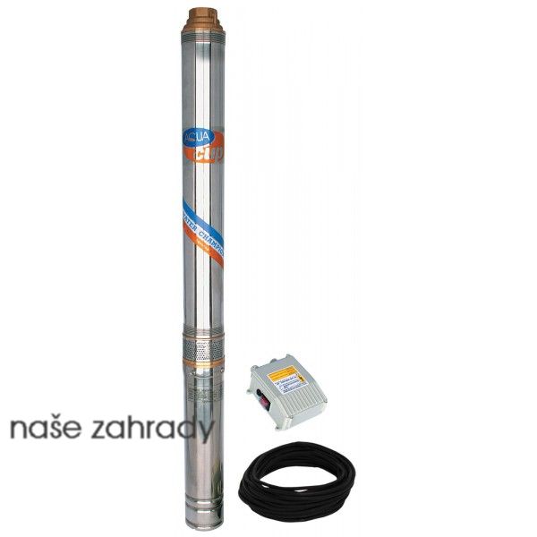 Ponorné studniční čerpadlo ELECTRA 3,5" 45/100, 2700 l/h, dopravní výška 100 m s ovládací skříní a kabelem 25 m které lze použít např. jako čerpadlo pro vrtané studny, čerpadlo do studny, čerpadlo pro závlahy. Čerpadla Aquacup ELECTRA jsou vhodná pro čerpání čisté a dešťové vody.Vícestupňové ponorné čerpadlo o průměru 83 mm s 1,5 m kabelem, vhodné pro domácí použití a průmyslové vodárny, zavlažování atd., v provedení motoru 230 V. Čerpadla do studny Electra mají průměr 83 mm a jsou vhodná do hlubokých vrtů o minimálním průměru 90 mm a lze je použít pro závlahu, přečerpávání a na stavbu domácích vodáren.