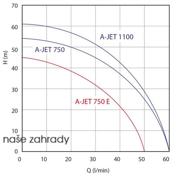 Samonasávací, odstředivé zahradní čerpadlo na vodu AquaCup A-JET 750 Bss s průtokem 3600 l/h a výtlakem 53 m o příkonu 750W, patří mezi čerpadla na zalévání (zavlažování) nebo pro domácí vodárny. Povrchové závlahové čerpadlo Alfajet (A-Jet 750) je vhodné k čerpání čisté vody bez pevných příměsí a abrasivního materiálu. Oběžné kolo z mosazi. Odstředivé čerpadlo lze použít pro stavbu vodáren, závlahu a přečerpávání na větší vzdálenost. Výhodou tohoto čerpadla je vysoká odolnost, spolehlivost a v neposlední řadě široká síť servisních středisek po celé ČR.