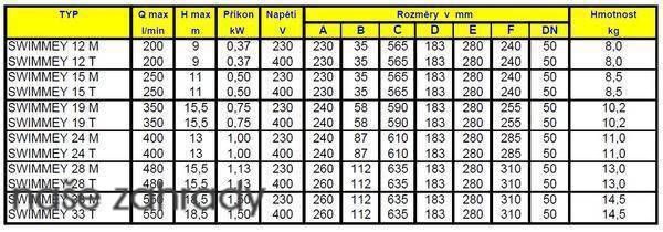 Bazénové čerpadlo SWIMMEY 24 T, 24000 l/h, výtlak 15 m, 400V, s vlasovým filtrem. Bazénová čerpadla Pentair Swimmey jsou určená pro filtrační jednotky a přečerpávání chlorované vody.