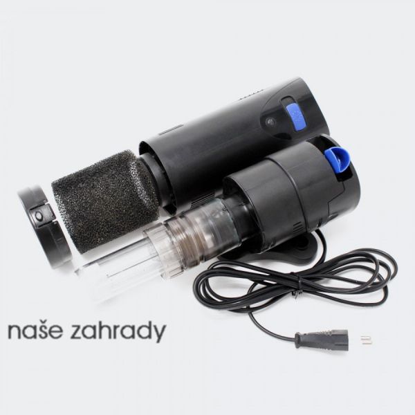 CUP-807 obsahuje filtrační pěnu a malý koš pro sypký materiál na čištění vody. Můžete ho použít např. na aktivní uhlí. Otočný výstup z čerpadla umožňuje nasměrovat proud vody tam, kam potřebujete. Možnost připojení hadičky pro přivzdušňování vody. Jedná se o nejnovější model.