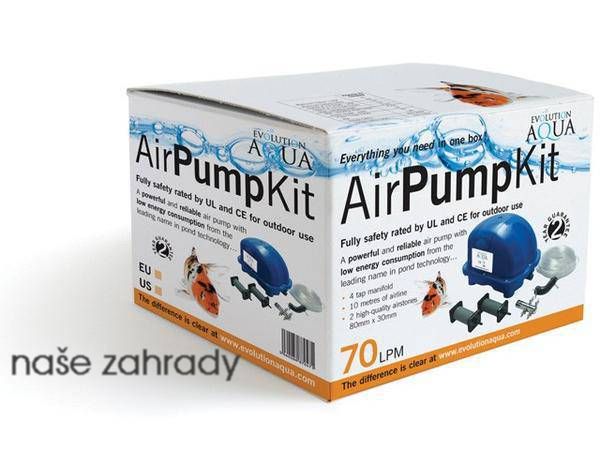 Vzduchovací kompresor AIRTECH 70 v setu od značky Evolution Aqua. Kompresor Airtech 70 SET je dodáván včetně 2 ks vzduchovacích kamenů, vzduchovacích rozvodů. hadiček a napojovacího kolínka.