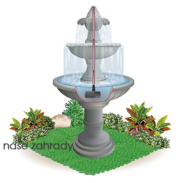 vodní chrliče, vodní zřídla, fontány, terasová jezírka a kamenné fontány