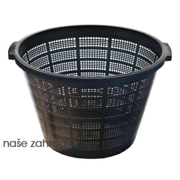Velký plastový košík určený speciálně pro snadné vysazování leknínů do jezírka a jejich opětovné vyjímání dle potřeby.